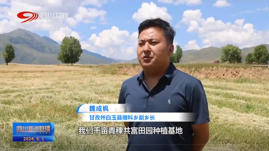 甘孜州白玉縣贈科鄉(xiāng)副鄉(xiāng)長 魏成楓:我們千畝青稞共富田園種植基地主要的運行模式是“支部引領+集體經(jīng)濟代管+群眾參與”的這種模式,今年預計我們每畝的產(chǎn)量能夠達到400斤左右。