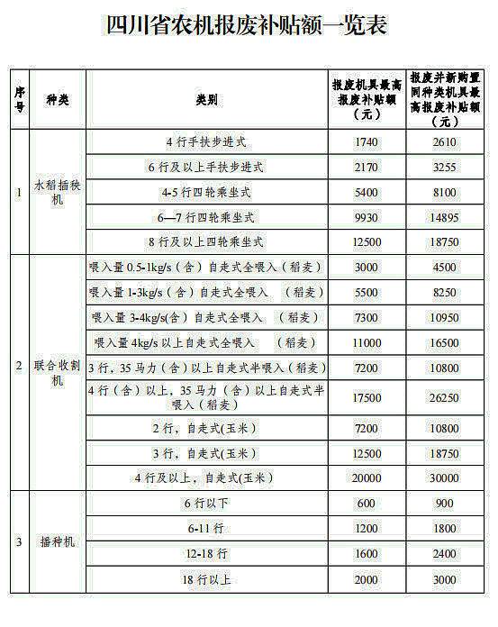 近日,農業農村廳、財政廳、省供銷社聯合印發《四川省農業機械報廢更新補貼實施方案》(以下簡稱《方案》),明確要通過政策支持進一步加大能耗高、污染重、安全性能低的老舊農業機械淘汰力度,加快先進適用、節能環保、安全可靠農業機械的推廣應用。
