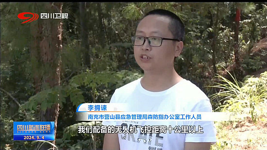 南充市營山縣應(yīng)急管理局森防指辦公室工作人員 李擁諫:我們配備的無人機飛控距離十公里以上,掛載的可見光和紅外熱成像攝像頭,能夠大范圍全天候?qū)崟r監(jiān)測回傳林區(qū)情況,形成“空中+地面”的立體巡護監(jiān)測體系。