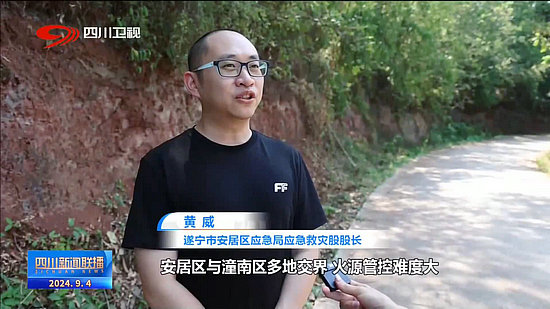 遂寧市安居區(qū)應(yīng)急局應(yīng)急救災(zāi)股股長 黃威:安居區(qū)與潼南區(qū)多地交界,火源管控難度大,為應(yīng)對當前高溫森林防滅火工作,(兩地)相鄰的街道分別派出網(wǎng)格員和護林員,加強巡山護林密度。