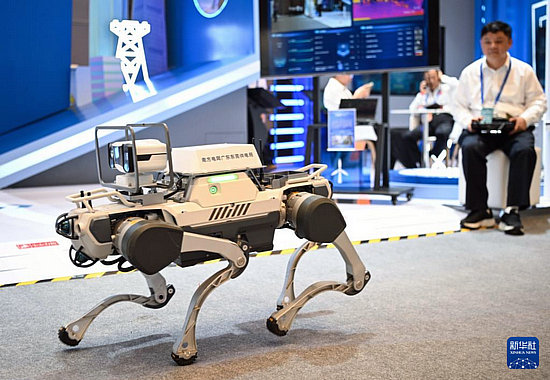 9月8日,網絡安全博覽會上的企業展示電網巡線機器狗。新華社記者 鄧華 攝