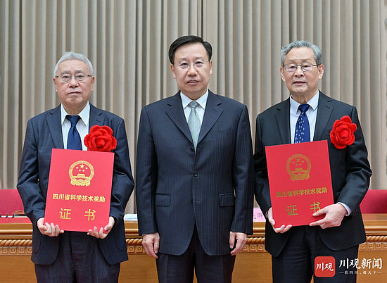 會上,宣讀了《四川省人民政府關于2023年度四川省科學技術獎勵的決定》。在熱烈掌聲中,王曉暉首先為省科學技術杰出貢獻獎獲得者杜祥琬、李安民頒發證書。隨后,王曉暉、施小琳、田向利等省領導為省杰出青年科學技術創新獎、自然科學獎、技術發明獎、科學技術進步獎的獲獎代表頒發證書。獲獎代表杜祥琬和成都市、綿陽科技城、國家高端航空裝備技術創新中心、四川華鯤振宇智能科技公司負責同志作了交流發言。