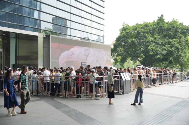 三星堆博物館,觀眾在最新出土的文物前參觀