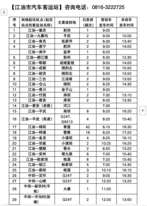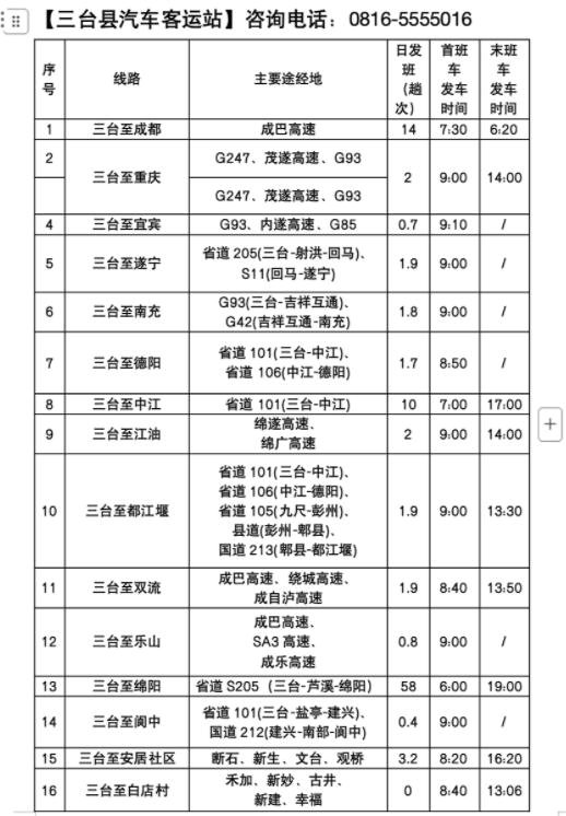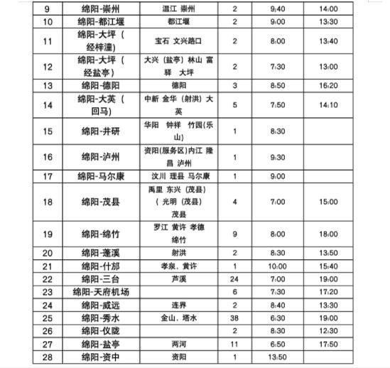 綿陽新聞網訊 目前,綿陽各大汽車站已迎來出行客流高峰。為了大家平安便利出行,記者將全市各車站主要班次時刻表進行了匯總,建議有出行需求的旅客提前了解、規劃乘車時間、路線。
