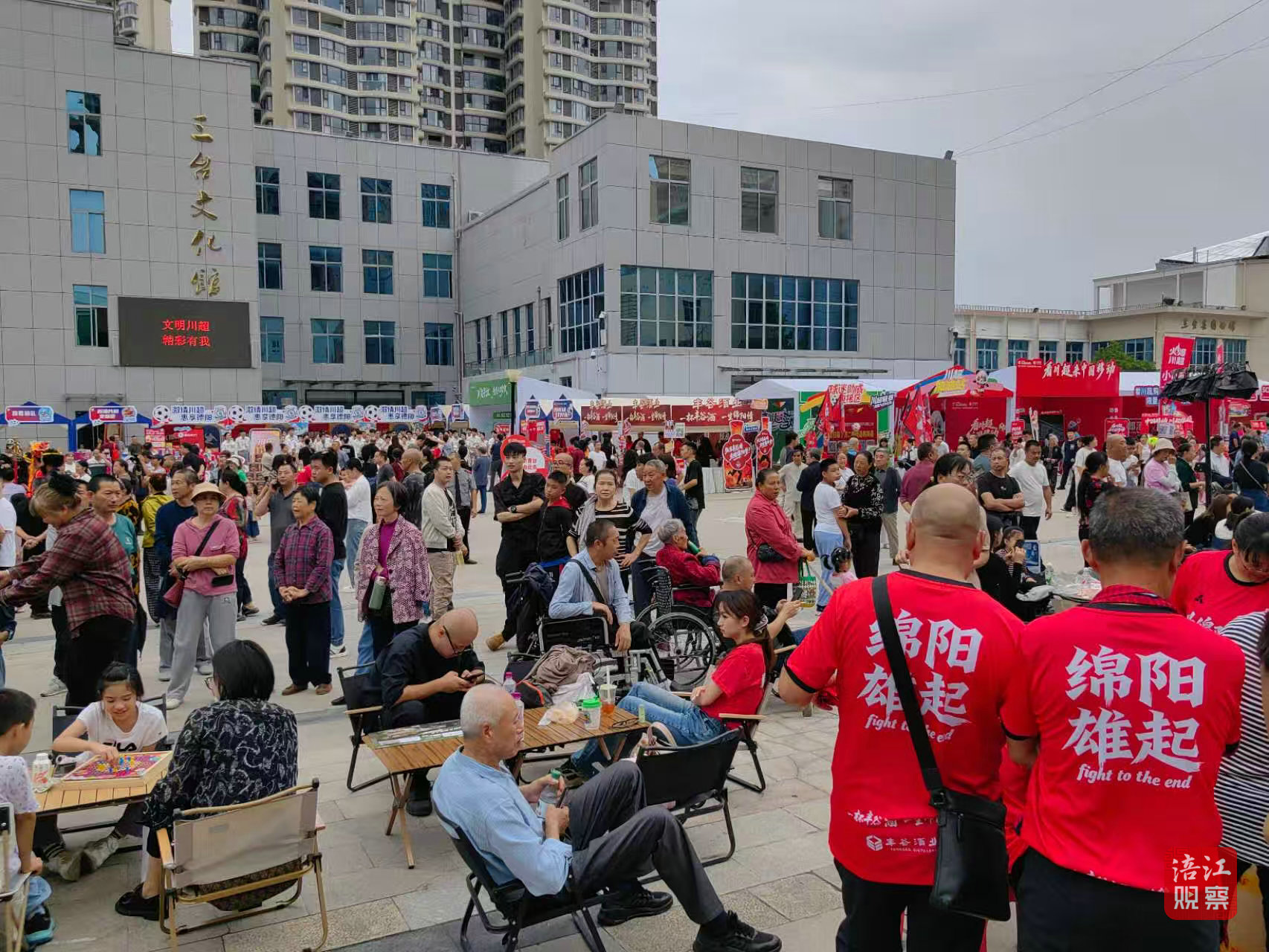 記者在現場看到,消費集市人流如織,江油肥腸、北川臘肉、梓潼片粉的香氣在空氣中交織,平武綠茶在沸水中舒展,安州安橙吸引著食客駐足,富臨、凱瑞等房企展銷也人氣頗旺,為觀眾提供安居綿陽的置業選擇。同時,綿陽各縣(市、區)特色啦啦隊輪番上陣表演,勁歌熱舞嗨動全場。