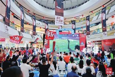 10月7日晚,“川超”聯賽綿陽九洲長虹隊首次主場作戰,對陣德陽重裝隊,點燃全城熱情。未能親臨賽場的綿陽市民,紛紛相聚在商超、廣場等各個第二觀賽點,為家鄉球隊吶喊助威。