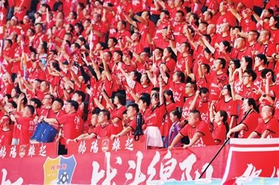 球迷把看臺變成一片熱情的海洋