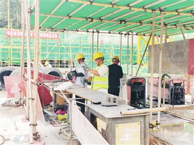 游仙區開元中學實施高中強基教育(教學綜合樓)項目現場,工人正在進行鋼筋加工工作。