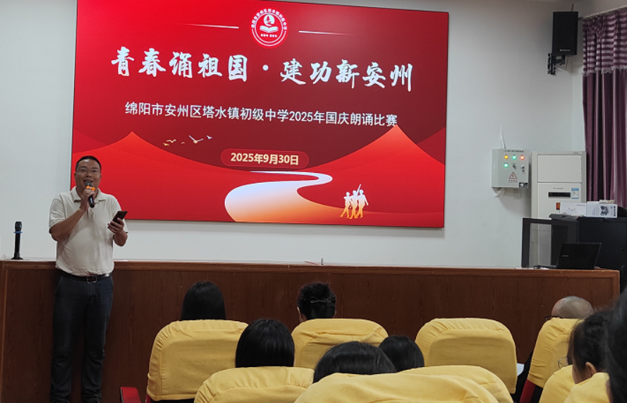 綿陽新聞網訊 9月30日上午,安州區塔水鎮初級中學大會議室內舉行了以“青春誦祖國,奮進新時代”為主題的國慶朗誦比賽活動,全校師生以詩為媒,共慶中華人民共和國成立76周年。