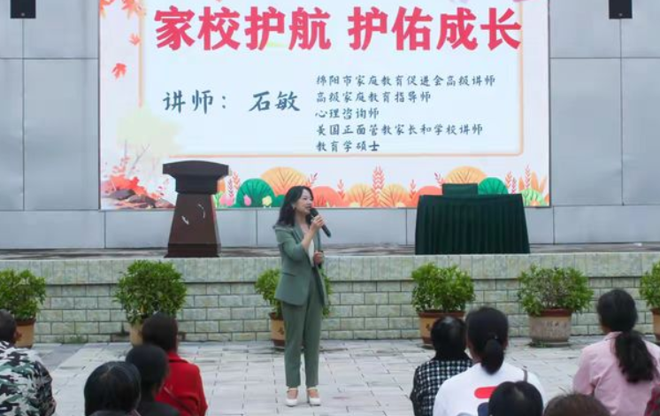 為了加強家校共育,該校特意邀請綿陽市家庭教育促進會石敏講師,與家長們共同探討“家校共育,護佑成長”的主題講座。在家長會上,石敏老師以“5+2=?”為引導,指出家庭教育也一樣重要。她憑借深厚的專業知識、豐富的實踐經驗以及對教育事業的無限熱愛,與家長們深入交流,為孩子們的成長成才之路點亮明燈,攜手家長共同培育孩子為成為德才兼備的棟梁之才。家長們感觸頗深,一致認為這次講座很受用。