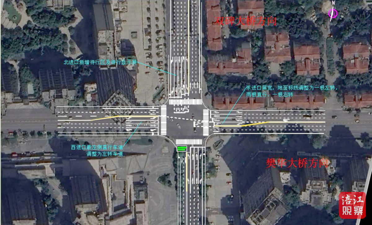 ◆三是優(yōu)化西進(jìn)口車道配置,調(diào)整為“兩左、一直、一右”車道,精準(zhǔn)匹配高峰時(shí)段左轉(zhuǎn)車流需求;