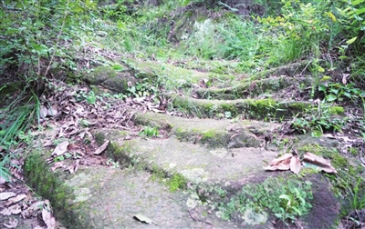 在文昌村的山坡上,近2000米長,由巨大青石條鋪就的梯步古道,雖布滿苔痕,但筋骨猶存。