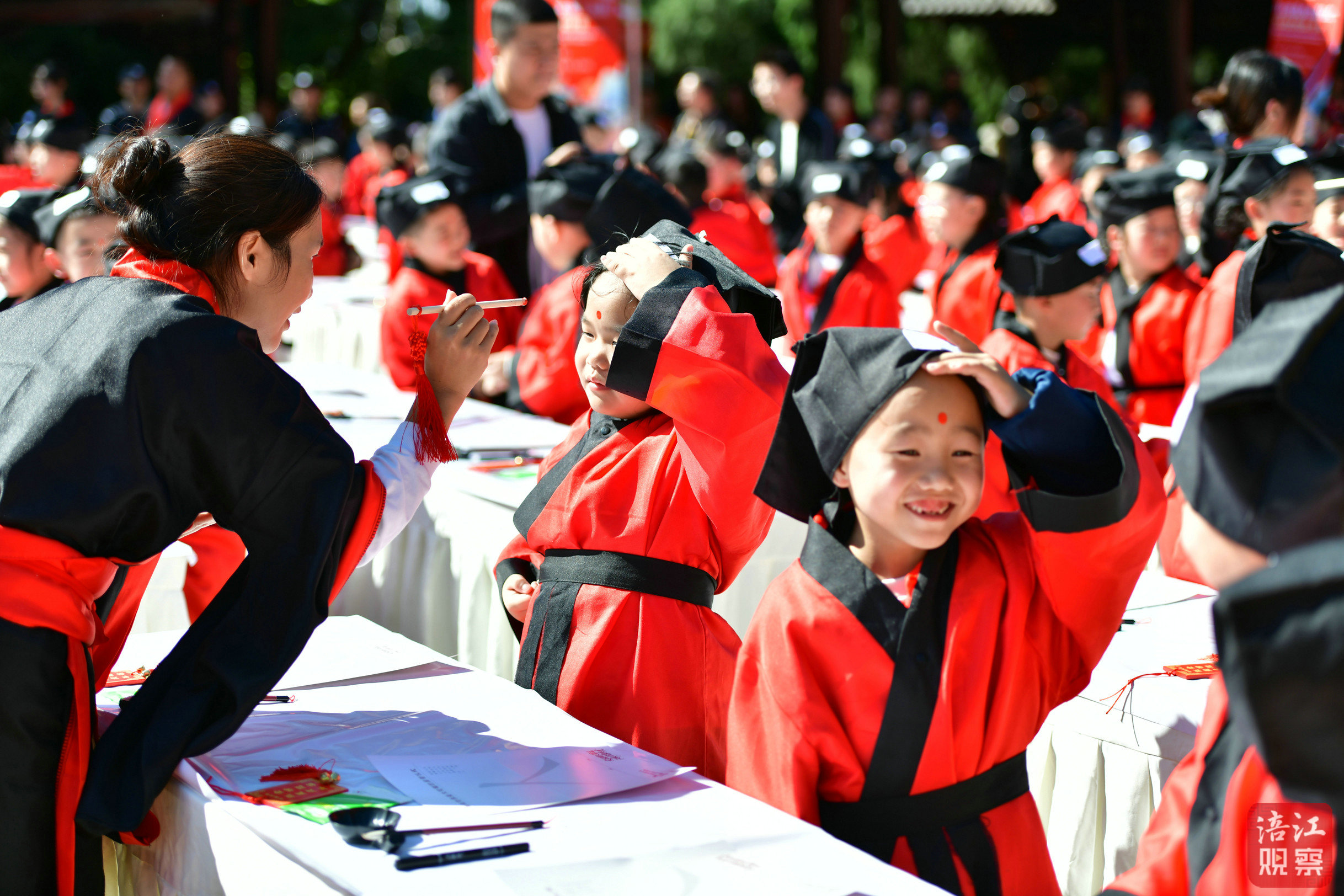 當天上午,作為中華傳統的禮儀習俗,文昌開筆禮在國家級非物質文化遺產《文昌洞經古樂》的悠揚樂聲中拉開序幕。