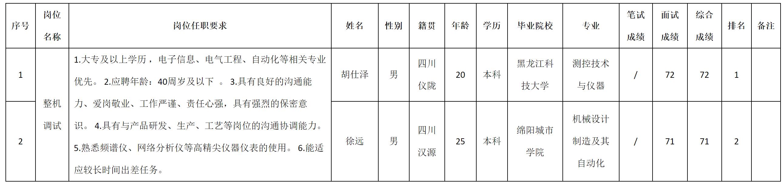 根據(jù)四川九洲防控科技有限責任公司發(fā)布的招聘公告及招聘相關(guān)規(guī)定,現(xiàn)將測試成績予以公示。