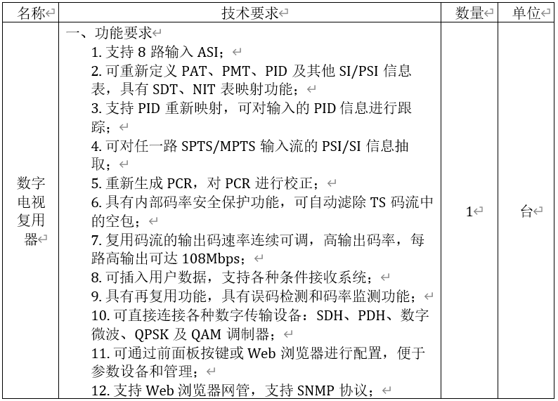 綿陽市新聞傳媒中心擬以詢價的方式采購1臺用于電視節目播出傳輸的數字電視信號復用器。誠邀符合《中華人民共和國政府采購法》第二十二條資格條件的供應商前來參與詢價。