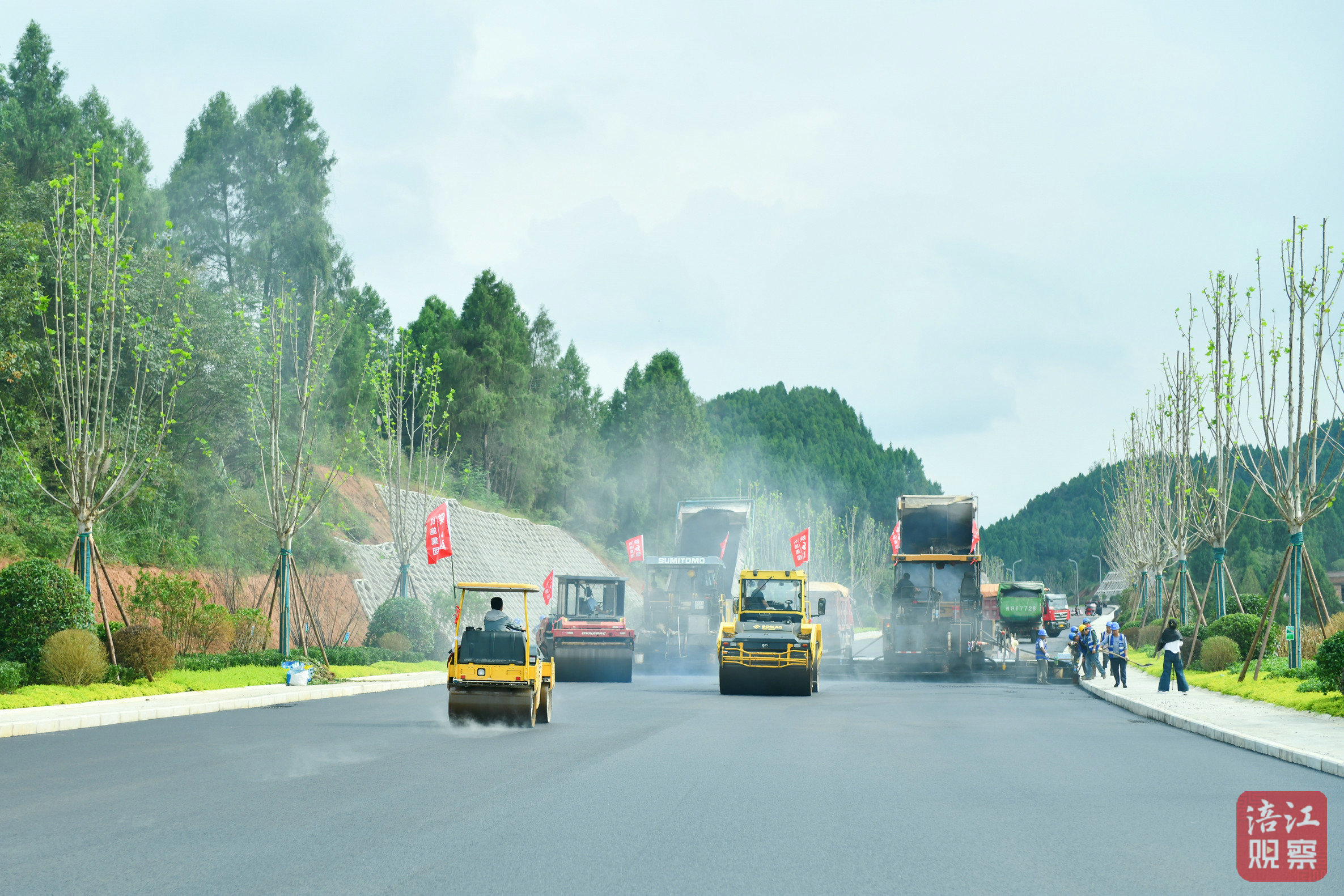 攤鋪現場,隨著攤鋪機履帶的快速轉動,路基被迅速覆蓋上一層平整的瀝青。緊隨其后的壓路機來回碾壓,將松散的瀝青層壓實平整,輪跡所過之處,路面變得光滑而堅實。