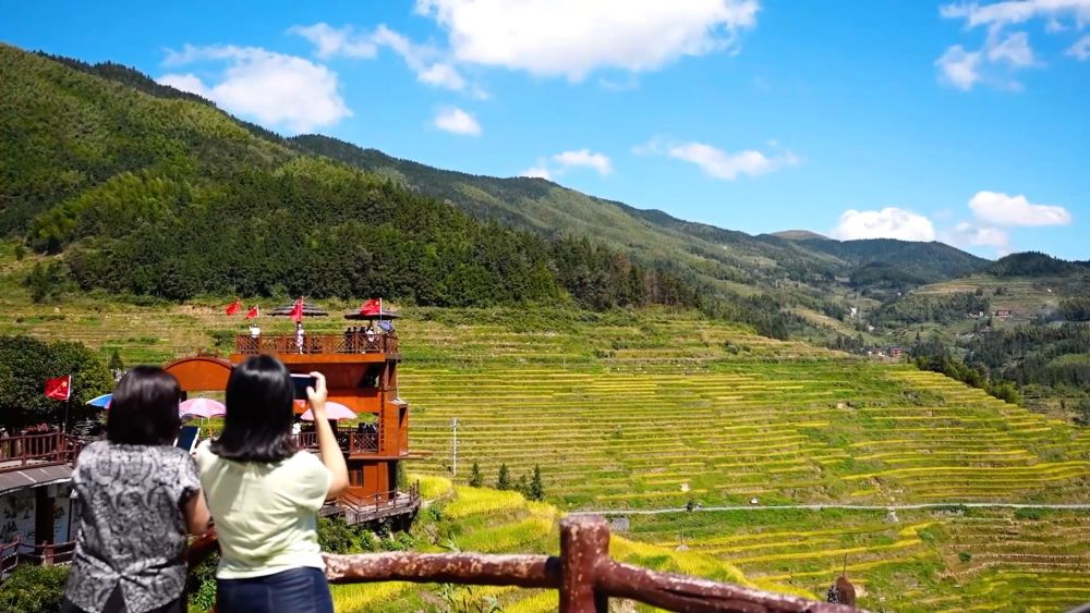 位于湖南新化的紫鵲界梯田景區迎來最佳觀賞期,游客們來到這里,打卡壯觀的梯田美景,感受千年農耕文化。