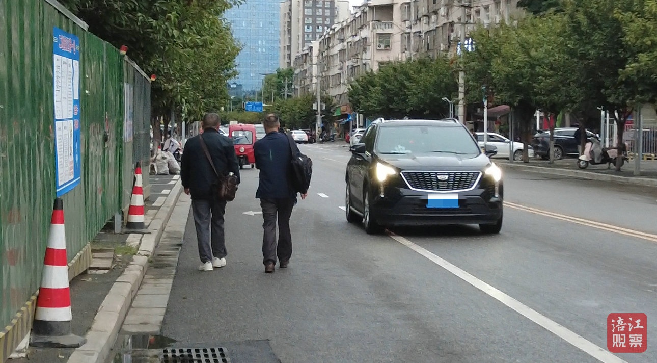 “我們就只有走到圍擋旁邊,挨著彩鋼皮走。”王大爺說。