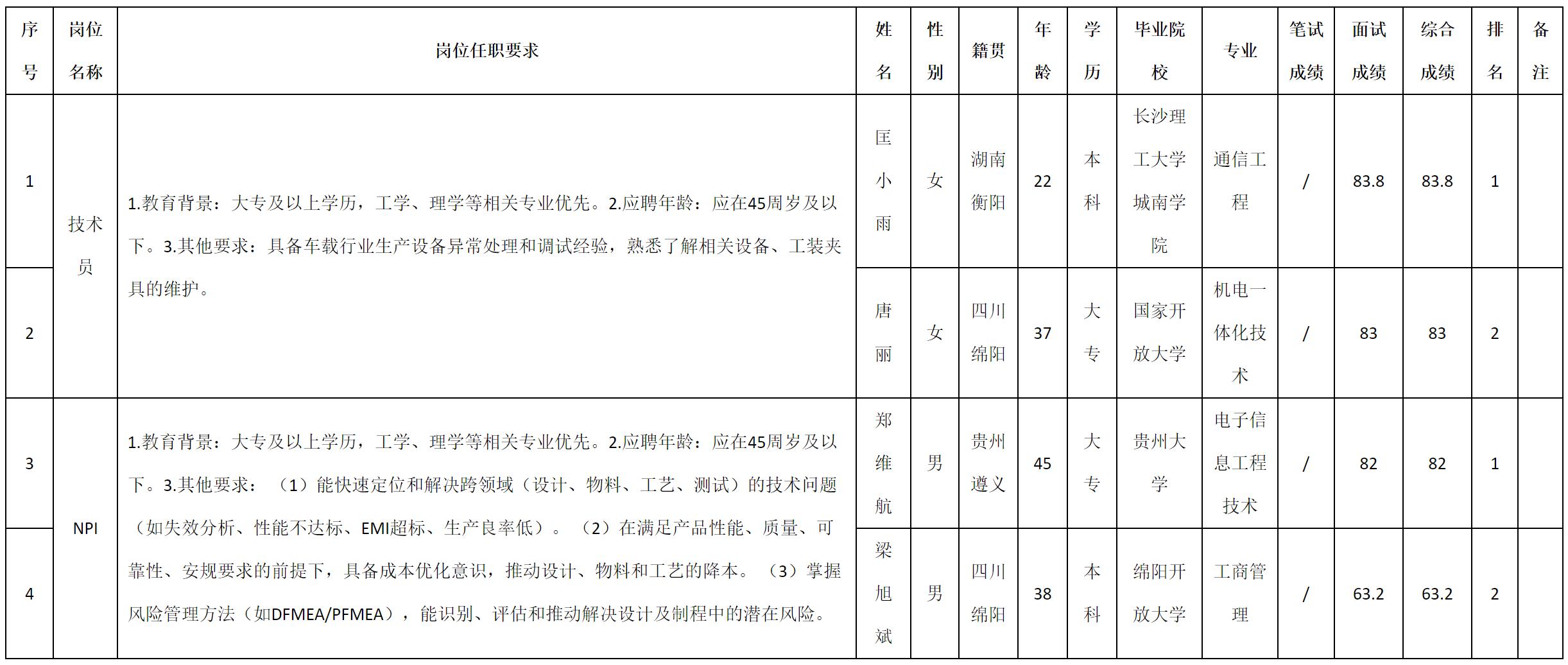 根據四川九州電子科技股份有限公司發布的招聘公告及招聘相關規定,現將測試成績予以公示。