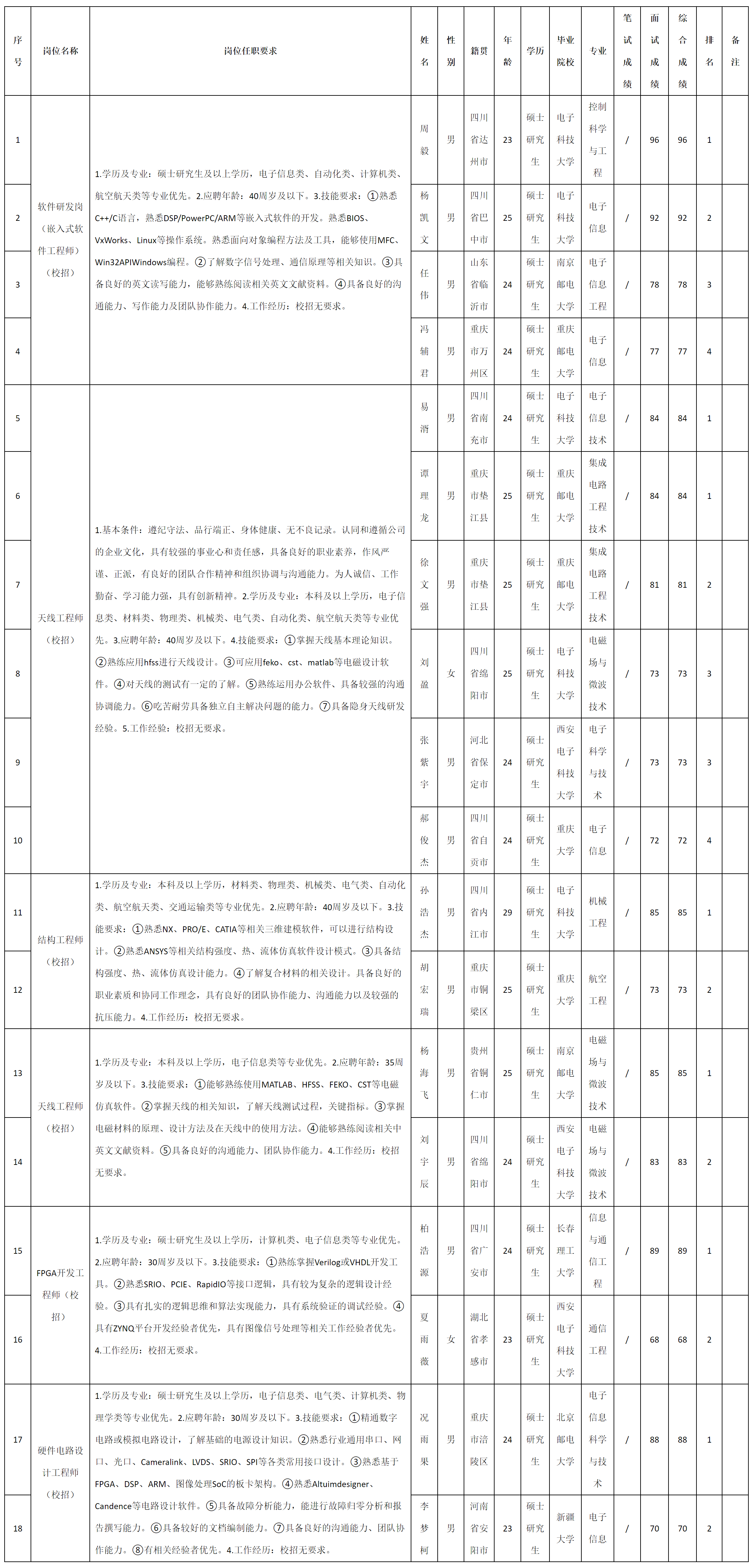 根據四川九洲電器集團有限責任公司發布的招聘公告及招聘相關規定,現將測試成績予以公示。