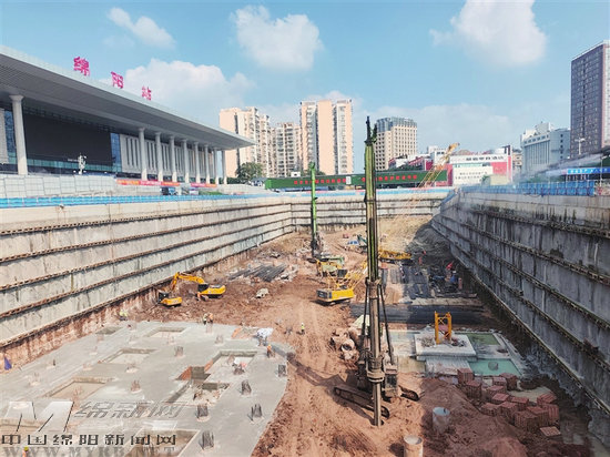 10月15日14時許,陽光正好,綿陽火車站站前廣場建設現場一片火熱。在下穿隧道工程建設工地,工人們各司其職、埋頭苦干,側墻等主體結構作業面全面鋪開,土方清運車輛來回忙碌。