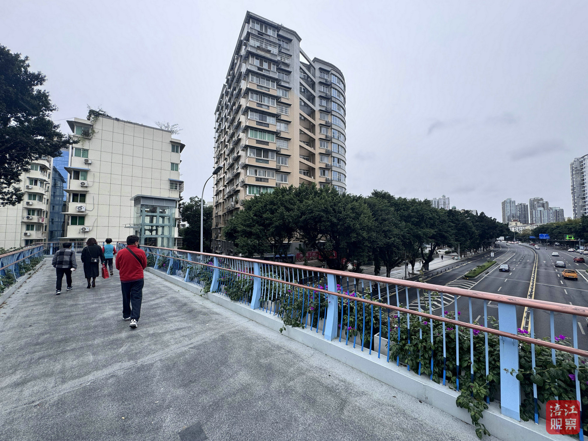 城市的暖心細節遠不止于公園。在新建的人行天橋上,一份“標配”的關懷同樣清晰可見。長虹大道中段新建的平政人行天橋,自今年5月啟用后,成了周邊居民出行的安心橋和舒心橋。