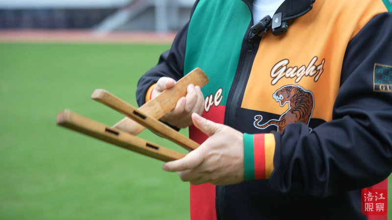 金錢板是四川地區傳統曲藝形式,由快板、蓮花鬧演變而來,表演融合打、說、唱、演于一體,其表演節奏明快、語言詼諧,常通過“數板”“唱詞”結合展現技藝,2008年被列入國家級非物質文化遺產名錄。在賴道紅創作的唱詞《川超雄起》中,金錢板通過足球主題的唱詞與擊板節奏,將傳統曲藝與現代體育結合,既傳遞競技激情,又彰顯地域文化特色。