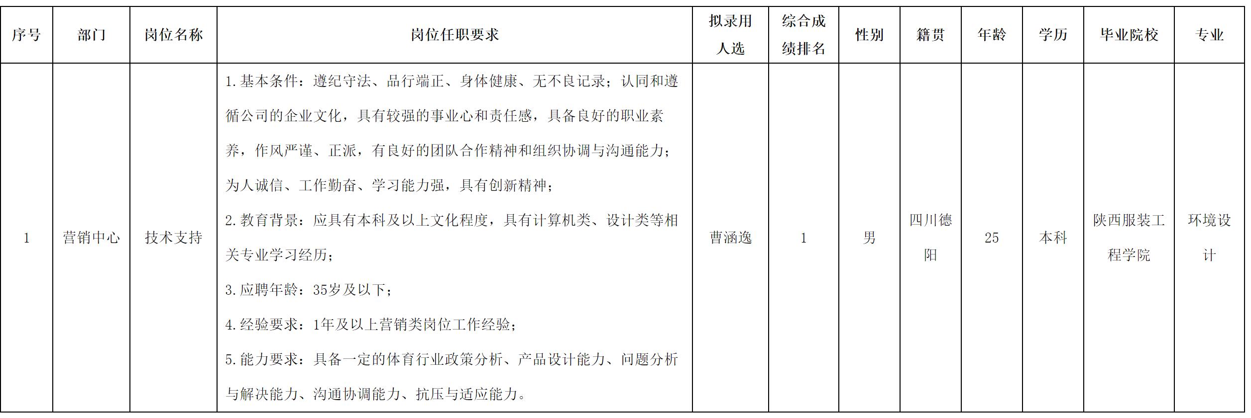根據四川長虹教育科技有限公司發布的招聘公告及招聘相關規定,經面試等環節,擬錄用曹涵逸同志到我公司工作,現予以公示,具體情況如下: