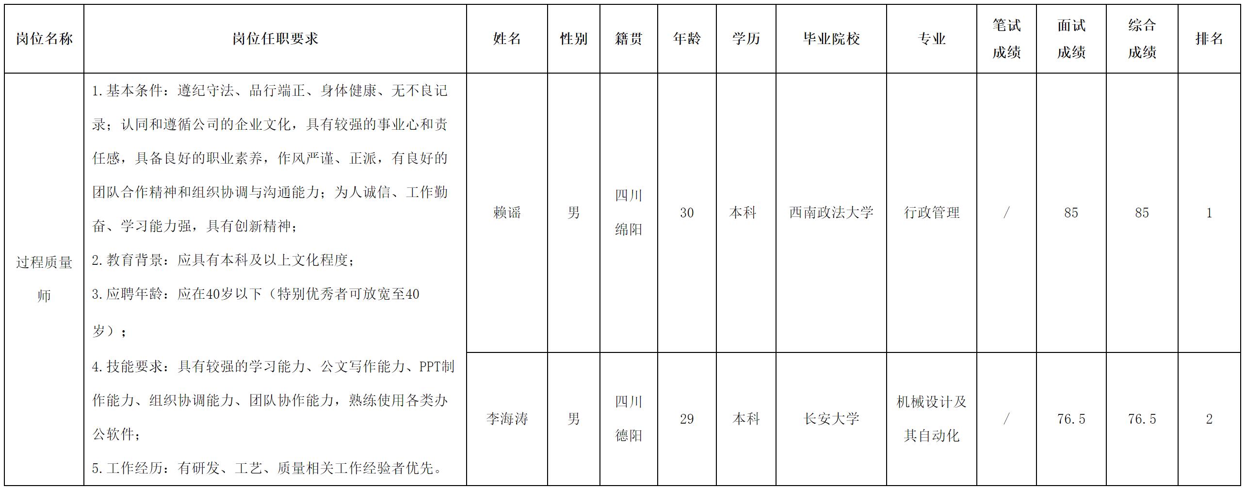 根據四川長虹空調有限公司發布的招聘公告及招聘相關規定,經面試等程序,現將面試成績予以公示。