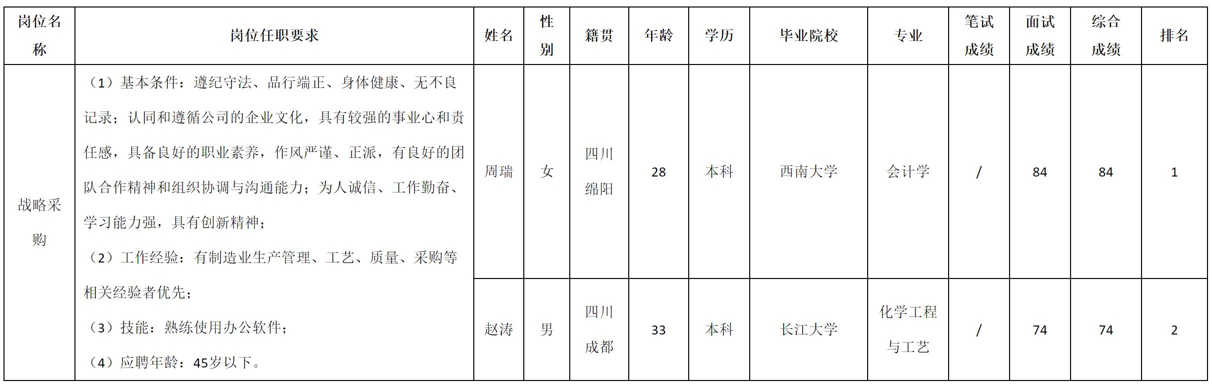 根據四川長虹空調有限公司發布的招聘公告及招聘相關規定,經面試等程序,現將面試成績予以公示。