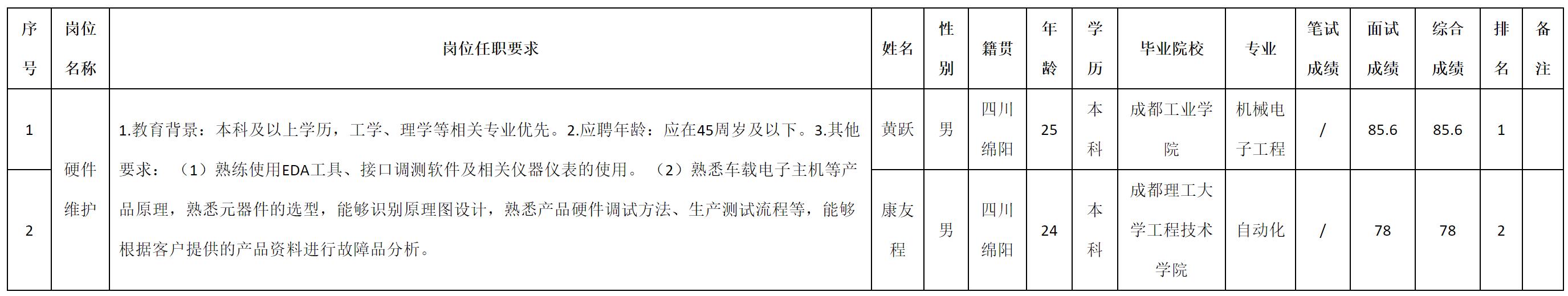 根據四川九州電子科技股份有限公司發布的招聘公告及招聘相關規定,現將測試成績予以公示。
