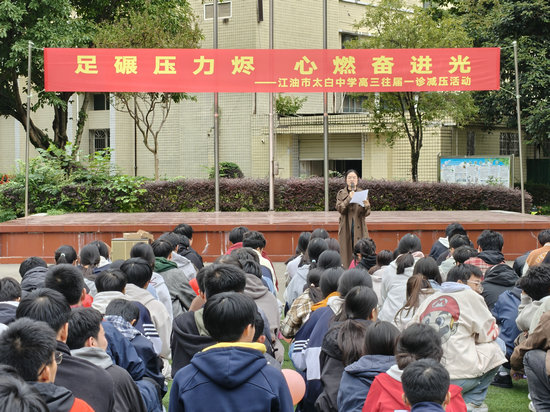綿陽新聞網訊 為了有效緩解高三往屆學生綿陽“一診”備考期間的心理壓力,引導學生以輕松心態、飽滿狀態投入沖刺復習,10月21日下午,江油市太白中學高三往屆年級組在學校操場舉行了以“足碾壓力燼·心燃奮進光”為主題的2025年秋踩氣球減壓活動。
