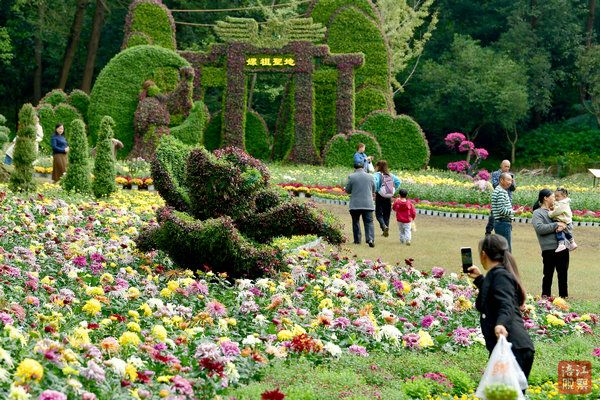 “安逸四川樂游綿陽”“嫘祖圣地”等造型各異、美輪美奐的菊藝展示,令人陶醉。各色花瓣在柔和的陽光下愈發絢麗多彩,散發出沁人心脾的菊香,讓觀展的市民游客流連忘返。