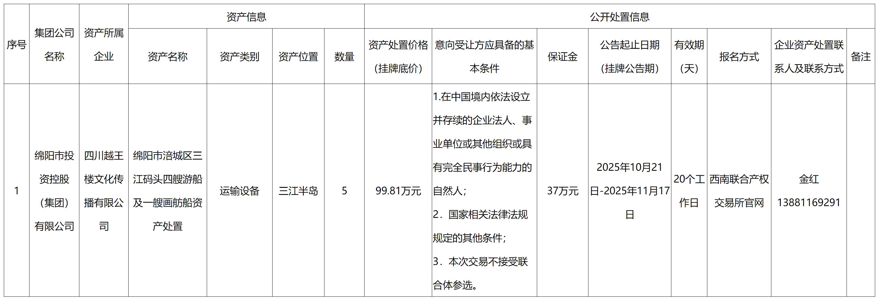 四川越王樓文化傳播有限公司資產處置公告