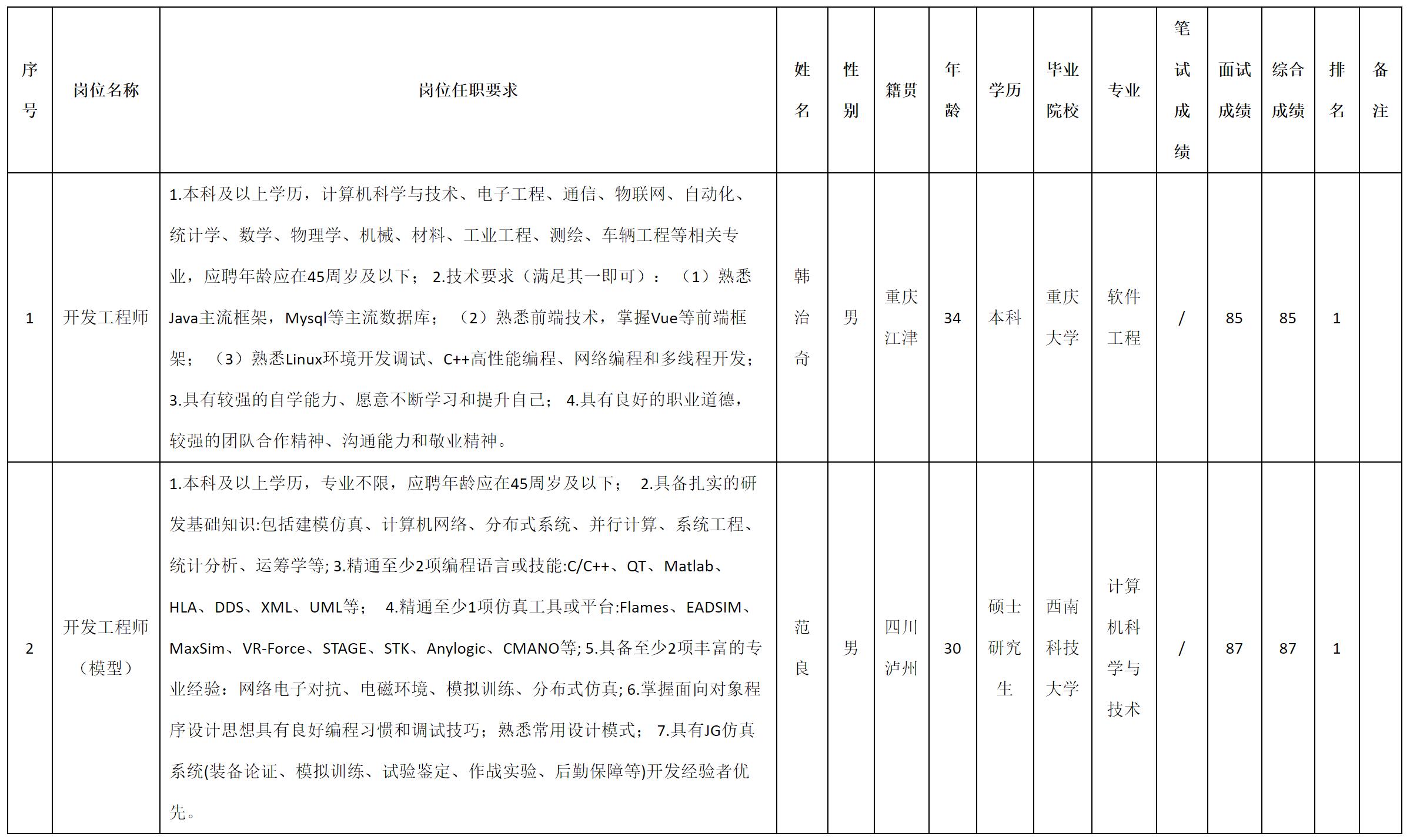 根據四川九洲投資控股集團有限公司軟件與數據智能軍團發布的招聘公告及招聘相關規定,現將測試成績予以公示。