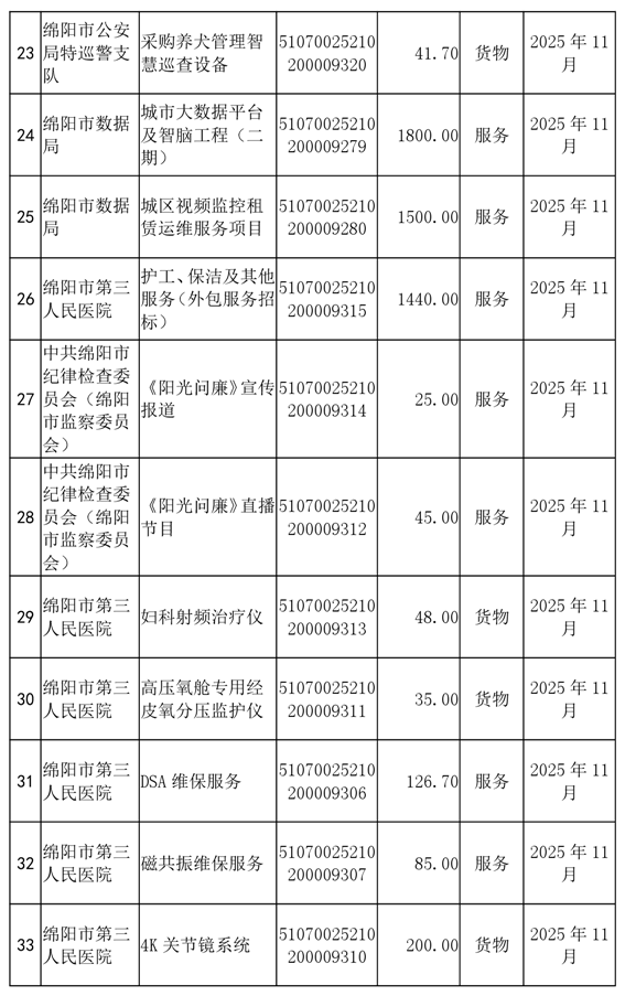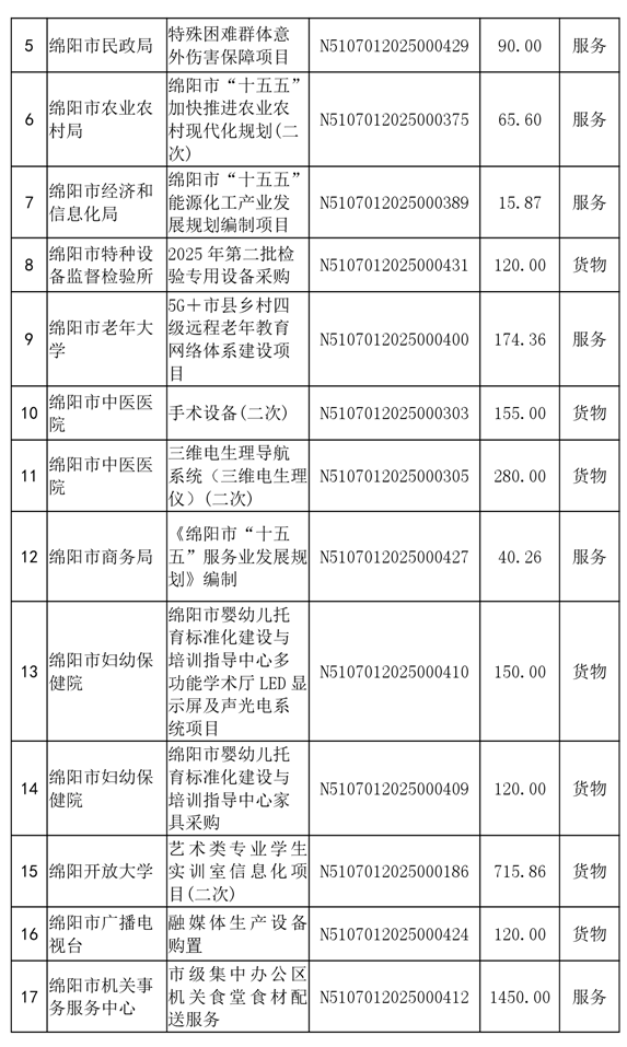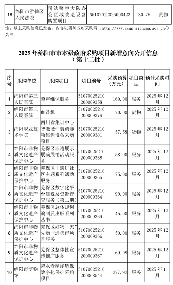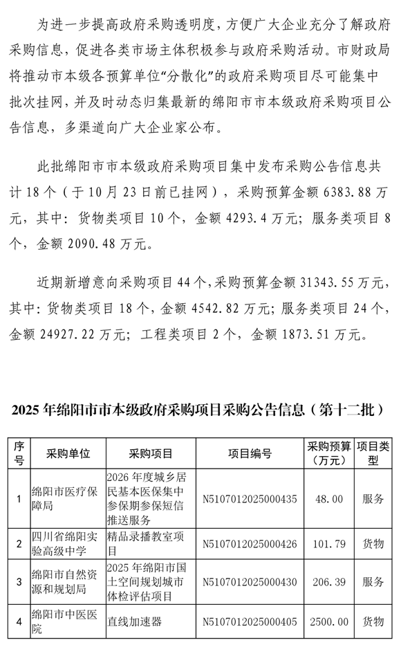 62個政府采購項目的“機會清單”出爐!(2025年第十二批)綿陽市市本級政府采購項目信息動態(tài)(2025年第十二波)