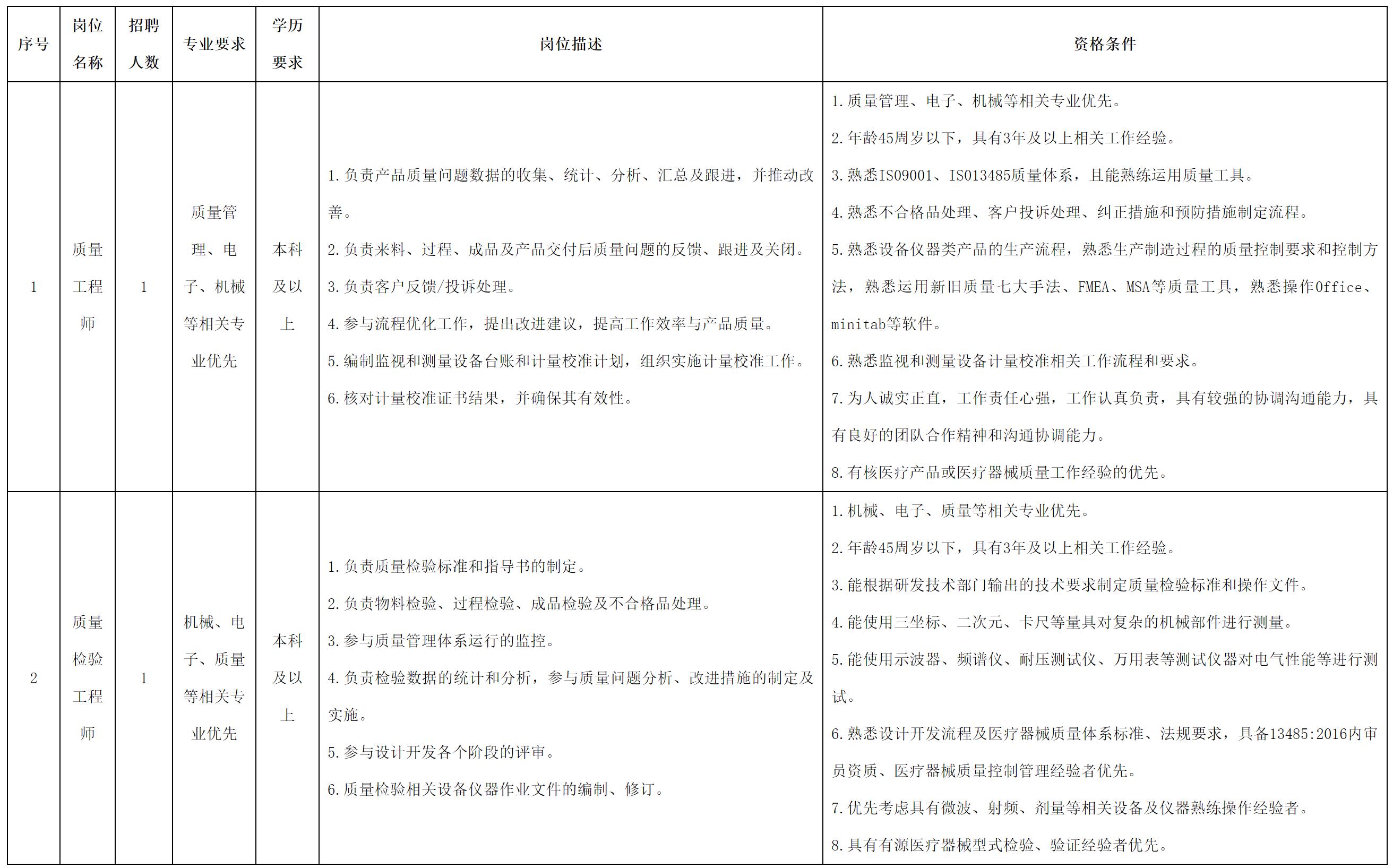 現(xiàn)因公司經(jīng)營發(fā)展需要,現(xiàn)面向長虹集團內(nèi)、外部誠聘質(zhì)量工程師、質(zhì)量檢驗工程師崗位人員,具體崗位招聘信息公告如下: