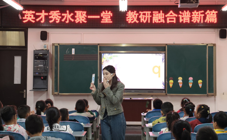 隨后,活動分語文、數學兩個專場同步進行。在語文專場,英才小學的劉老師展示了一年級拼音教學《jqx》。她巧妙運用多種教學手段,將抽象的拼音知識變得生動有趣,充分體現了以學生為中心的教學理念。數學專場中,陳老師執教一年級數學《6、7的加法解決問題》。她通過情境創設與問題引導,重在培養學生的邏輯推理能力,展示了扎實的教學功底與課堂組織能力。