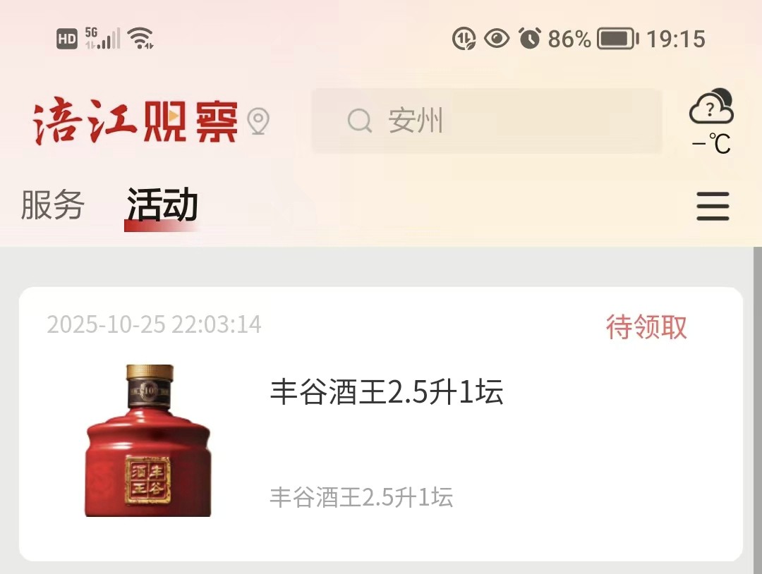 家住三臺縣的宋進便是一位幸運兒。賽前,他在競猜活動中選擇了綿陽隊獲勝。比賽結束后,他迅速參與抽獎環節,竟抽中了2.5L裝的豐谷酒王大獎。