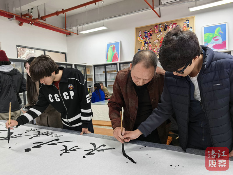 書法區前,老師手把手教大家握筆運筆,墨汁在宣紙上暈開,留學生們認真臨摹著自己的中文名字,直到寫出滿意的字跡,小心翼翼地鋪平宣紙晾干,眼里充滿了好奇。
