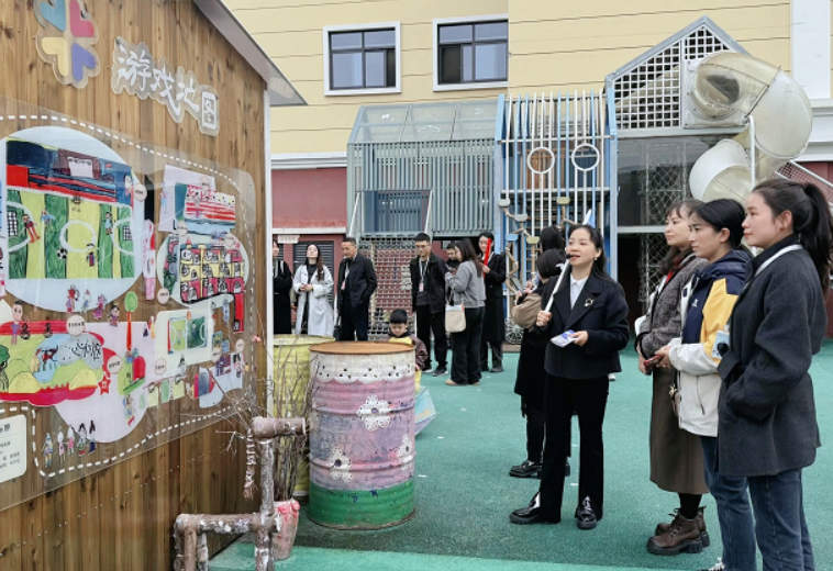 活動中,參觀團在北街幼兒園教師團隊的帶領下,走訪了戶外與室內各游戲區域。戶外的萌寵之家、沙水漫時光、童話樹屋、“泥”好有趣、涂鴉吧等特色區域,以自然材料和開放環境支持幼兒自主探索;小小氣象站、交通騎行區、木工坊、建構區等功能性區域,讓孩子們在動手操作與角色扮演中提升綜合能力。
