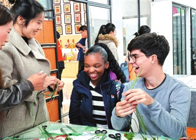 在體驗環節,留學生們分成四組,輪換體驗剪紙、漆扇、書法、草編四大項目。剪紙區,留學生在老師的教授下學習剪紙,新西蘭留學生特-拉哈納·佩塔·羅皮哈拿著自己的作品興奮地向其他留學生“炫耀”;在草編區,非遺代表性傳承人黎覓現場展示技藝,一根根普通草絲在指尖纏繞、打結,秒變惟妙惟肖小動物,留學生們爭相討教,學得有模有樣……