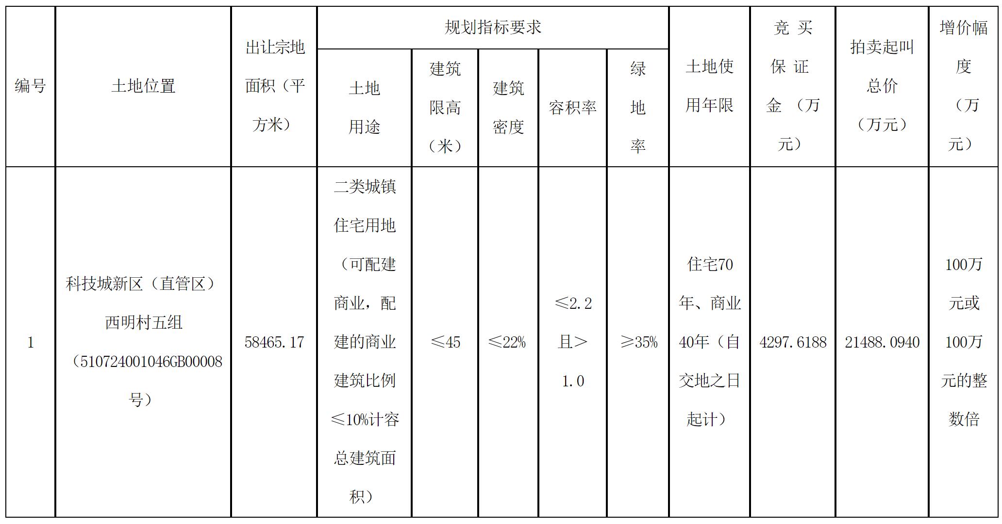 經綿陽市人民政府批準,綿陽科技城新區(qū)管理委員會決定以拍賣方式出讓一宗國有建設用地使用權,綿陽市公共資源交易服務中心具體組織實施本次拍賣出讓活動,現將有關事項公告如下: