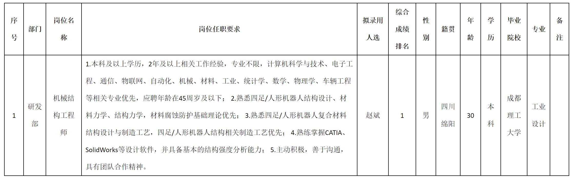 根據(jù)四川九洲投資控股集團(tuán)有限公司軟件與數(shù)據(jù)智能軍團(tuán)發(fā)布的招聘公告及招聘相關(guān)規(guī)定,經(jīng)測試、考察、體檢等程序,擬錄用趙斌同志到四川九洲投資控股集團(tuán)有限公司軟件與數(shù)據(jù)智能軍團(tuán)工作,現(xiàn)予以公示,具體情況如下: