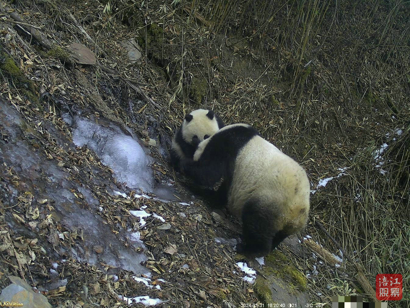 大熊貓國家公園平武片區紅外相機拍攝的大熊貓母子