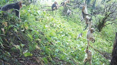 近日,大熊貓國家公園安州片區(qū)再添珍貴影像:畫面中,大熊貓母子“親子出行”,3只川金絲猴幼崽掛成一串在樹枝上“蕩秋千”。