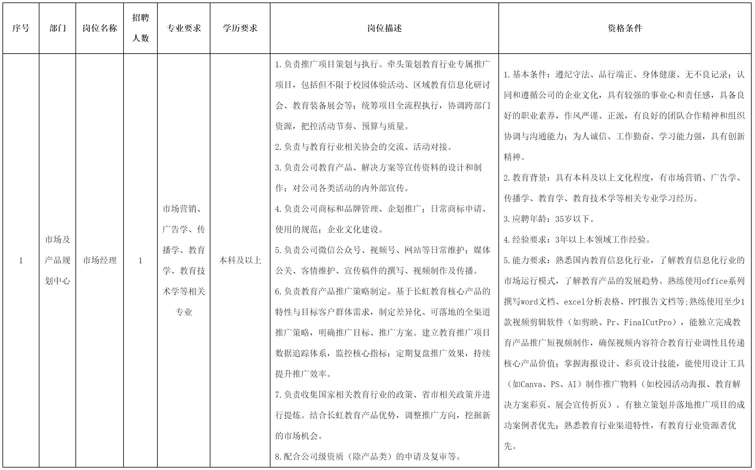 薪酬和福利等按照四川長虹教育科技有限公司有關規定執行;工作地點:綿陽。