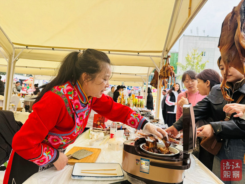 看川超,走北川過羌年。“來嘗嘗我們北川的老臘肉!”另一邊,本次集市設(shè)置的北川展位前,色澤紅亮、香氣撲鼻的臘肉臘腸引得食客紛紛駐足。銷售人員一邊熟練地切片分裝,一邊介紹:“我們的豬肉來自北川高山,用古法熏制,就是這個(gè)家鄉(xiāng)味!”