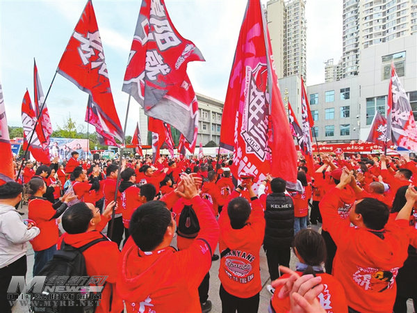 比賽尚未開始,激情已被點燃。綿陽和甘孜的啦啦隊在“樂享川超”專屬市集開展了活力PK。在這里,市集各檔口前人頭攢動,激情與消費同步升溫。