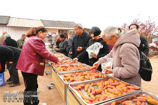 蒸薯區香氣四溢,村民紛紛前來品嘗。